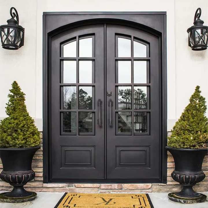 ประตูวิลล่าแบบยุโรป ขายตรงจากโรงงาน ผลิตจากอะลูมิเนียมหล่อ ป้องกันการโจรกรรม พร้อมกระจกเหล็ก ประตูบานคู่สำหรับทางเข้าวิลล่า