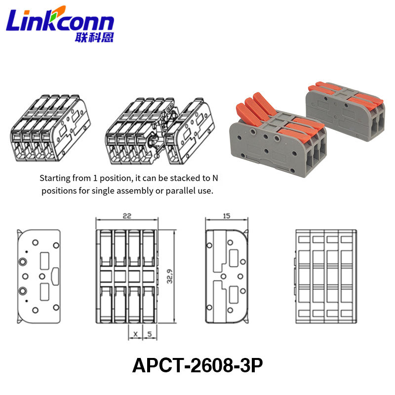 ขั้วต่อสายไฟทองเหลืองสำหรับต่อขั้วต่อสายไฟเบอร์ APCT-2608-3P ต่อเร็วไม่เจ็บ