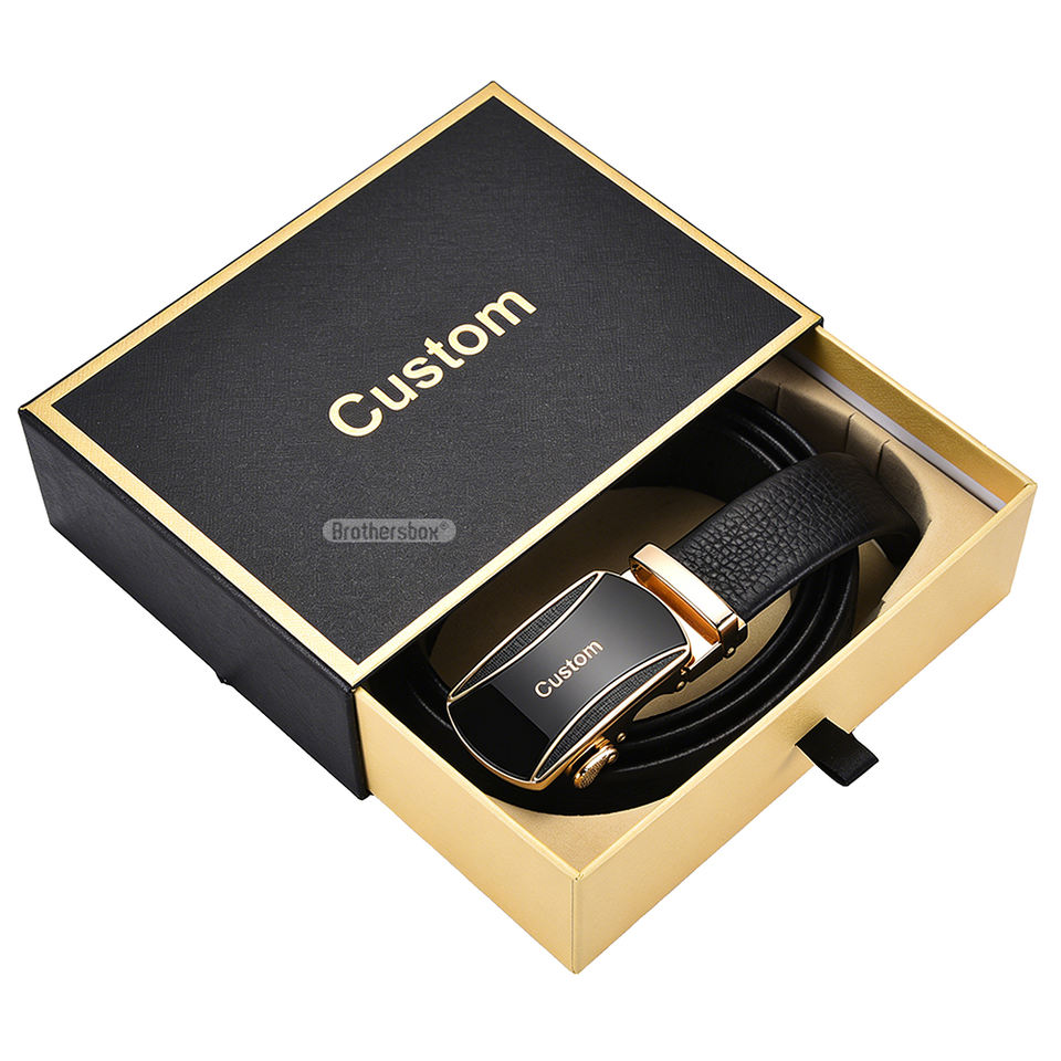 กล่องบรรจุภัณฑ์เข็มขัดแบบสั่งทำพิเศษจากโรงงานโดยตรง กล่องของขวัญกระดาษแบบลิ้นชักเลื่อนได้ พร้อมโลโก้