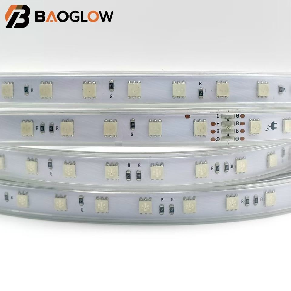 ไฟ LED RGB ขายตรงจากโรงงาน สำหรับตกแต่งภายในและภายนอกอาคาร แถบไฟ LED 220V 60 หลอด 12 มม. PCB IP67 100 เมตร/ม้วน โคมไฟสวน