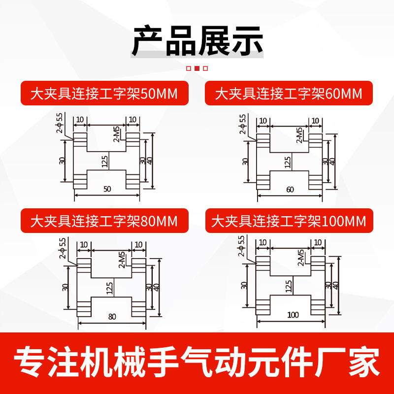 อะแดปเตอร์แขนหุ่นยนต์ขายตรงจากโรงงาน ชิ้นส่วนตัวหนีบขนาดใหญ่และขนาดเล็กสำหรับเชื่อมต่อคานไอบีมและบล็อกแอลแบบนิวเมติก