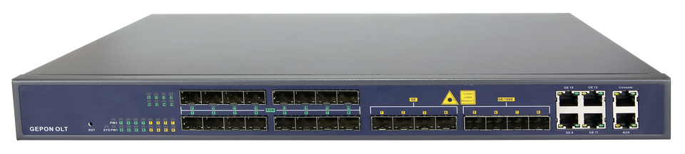 16 * พอร์ต EPON (SFP) + 4 * GE (RJ-45) + 4 * GE (SFP) + 4 * GE (SFP) / 10GE (SFP +)