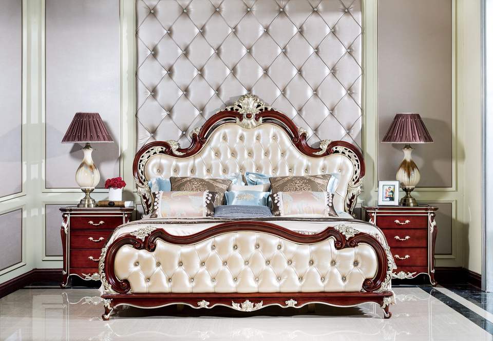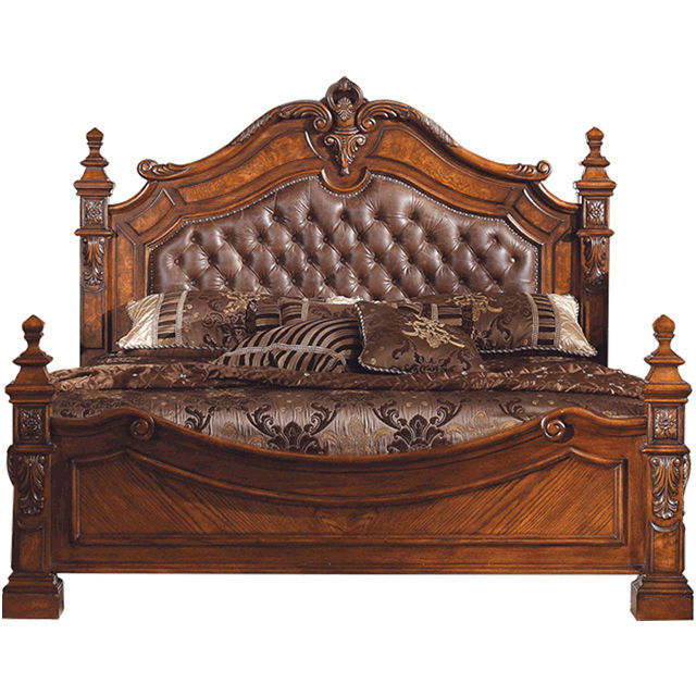 ขายตรงจากโรงงาน เฟอร์นิเจอร์ชุดเตียงไม้จริงขนาดคิงไซส์ ดีไซน์ยุโรปโบราณ คุณภาพสูง สั่งทำได้ ประกอบง่ายแบบ KD