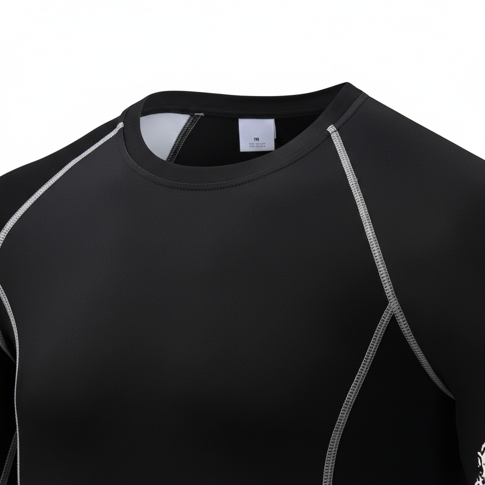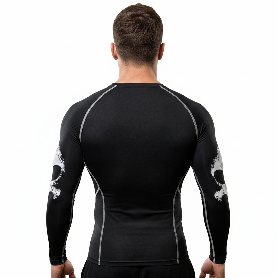 เสื้อรัดรูปผู้ชายระบายอากาศได้ดีสำหรับ BJJ แขนยาว ผลิตจากผ้าสแปนเด็กซ์/โพลีเอสเตอร์ 160 กรัม ขายตรงจากโรงงาน รับสกรีนโลโก้