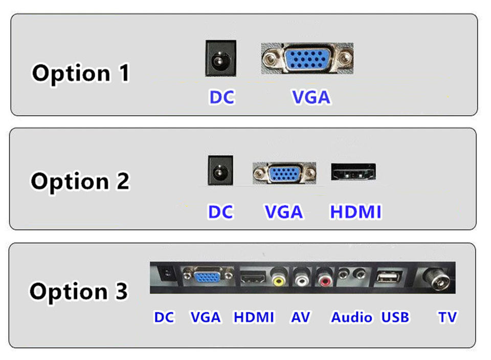 อินเตอร์เฟซ:VGA (ตัวเลือก HD Mi/USB/AV/Audio/TV)