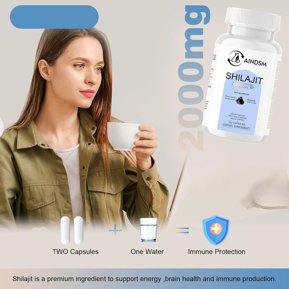แคปซูล shilajit ส่งตรงจากโรงงานแคปซูล shilajit สีทองมอสจากทะเล Ashwagandha เสริมสร้างภูมิคุ้มกันสำหรับผู้ใหญ่