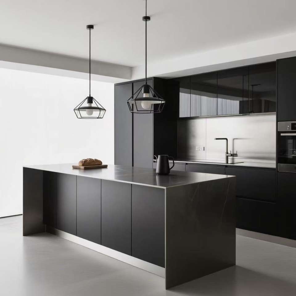 แผ่นผนังพลาสติกเคลือบชิมเมอร์สีดำกันน้ำใช้ในครัวเรือนที่เป็นมิตรกับสิ่งแวดล้อมพร้อมโซลูชันการออกแบบกราฟิก