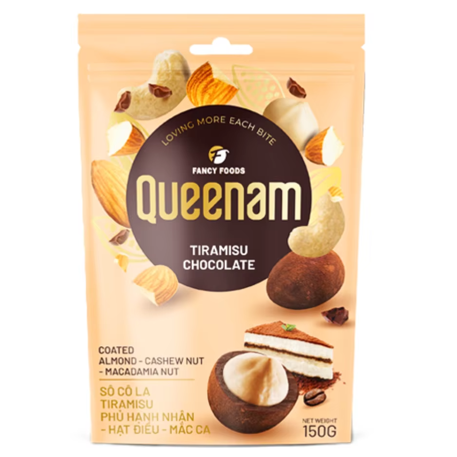 ช็อกโกแลตดรากีส่งตรงจากโรงงาน ขายส่งแบบ OEM/ODM ฮาลาล ทีรามิสุเคลือบช็อกโกแลต อัลมอนด์ เม็ดมะม่วงหิมพานต์ แมคคาเดเมีย นัท 150 กรัม