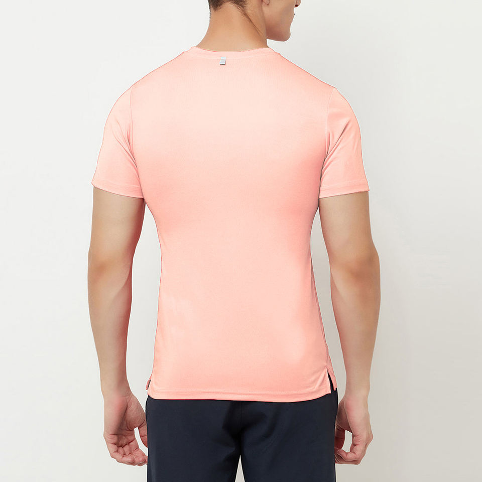 เสื้อยืดสีชมพูสำหรับผู้ชายเสื้อยืดคอกลมแขนสั้นสำหรับผู้ชายเสื้อยืดผ้าแห้งเร็วคอกลมเข้ารูปเข้ารูป