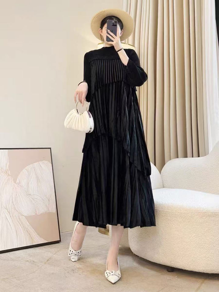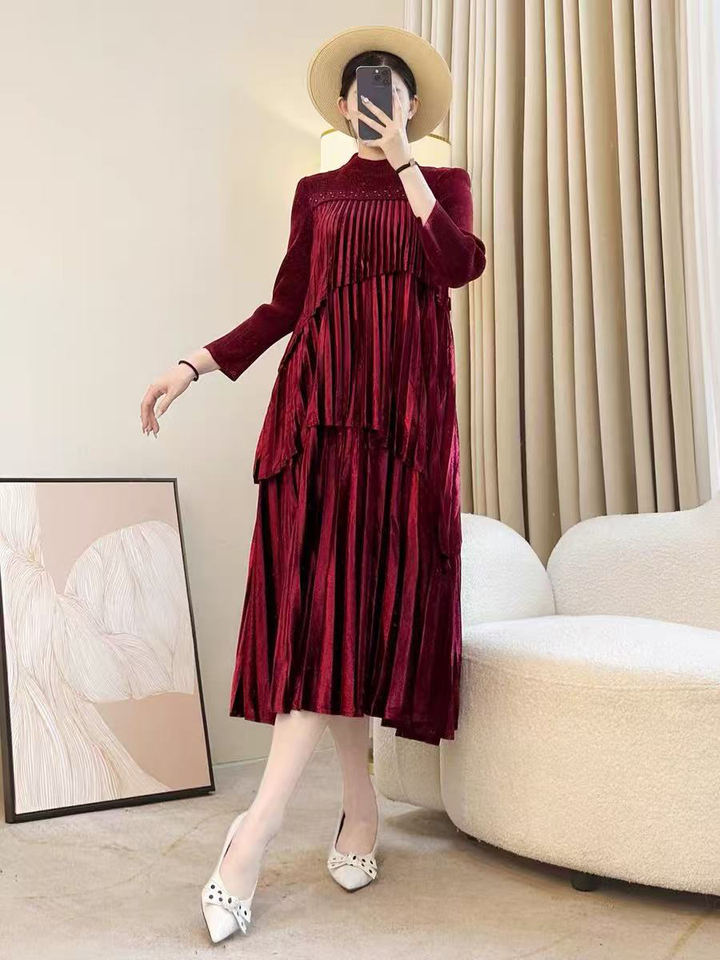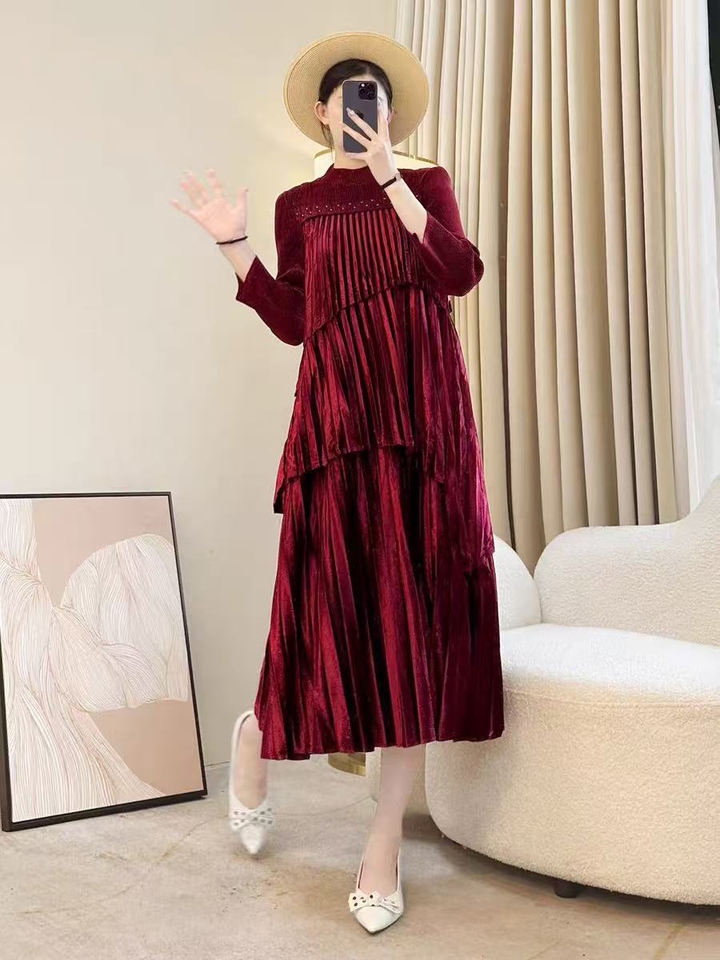 คอตั้งแบบมิดิเอไลน์ประดับลูกปัดสำหรับ2025ผู้สูงอายุวัยกลางคนภรรยารวยระดับไฮเอนด์สำหรับฤดูใบไม้ร่วง