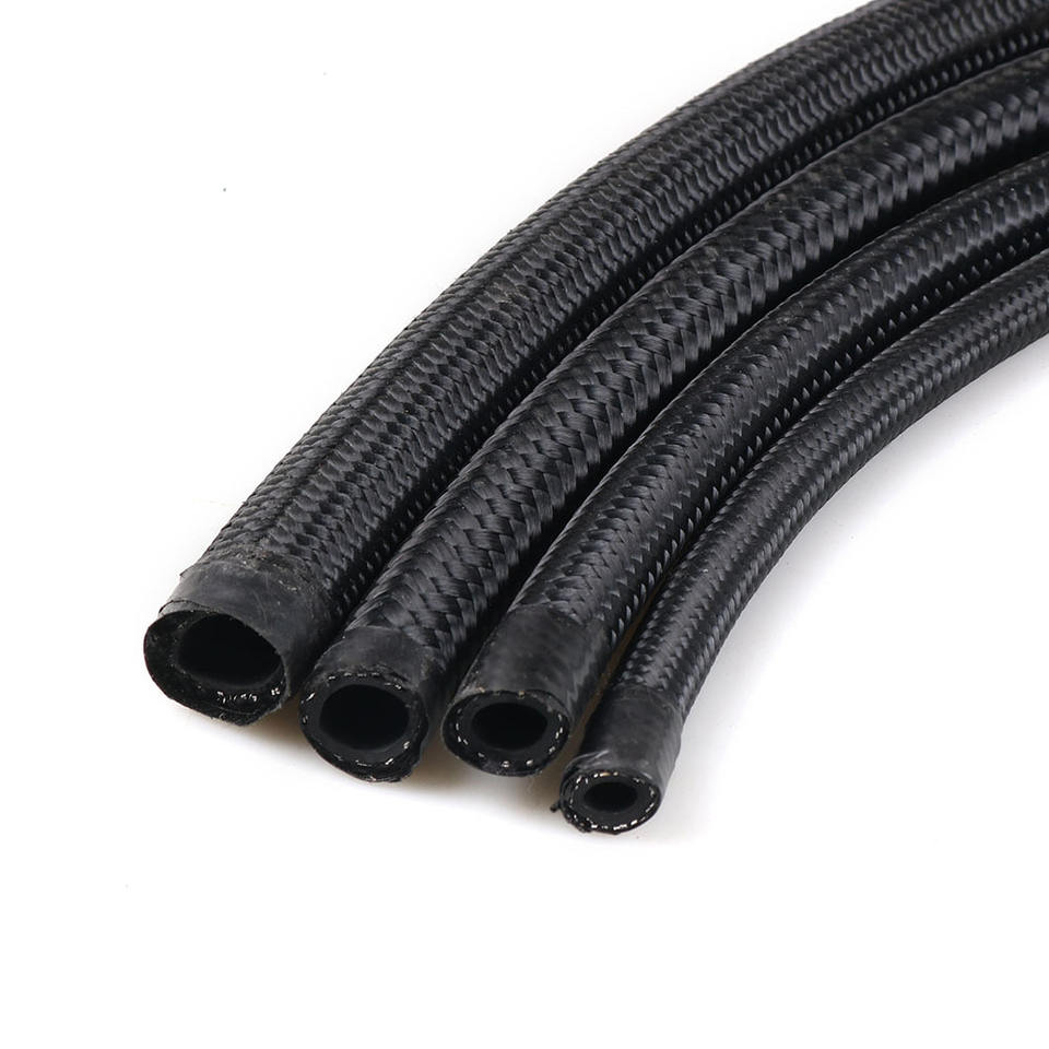 สายยางน้ำมันแรงดันสูงถักไนลอนสีดำจากโรงงานโดยตรง สายยางน้ำมัน CPE สำหรับการดัดแปลงรถยนต์และสายยางน้ำหล่อเย็น
