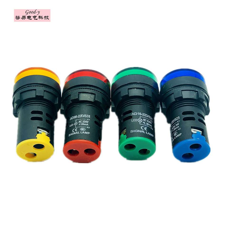 ไฟแสดงสถานะพลังงาน AD16-22D/S ขนาดใหญ่ จัดจำหน่ายโดยตรงจากโรงงาน ไฟ LED สัญญาณ 220V ตัวเรือนพลาสติก รูยึด 22 มม.