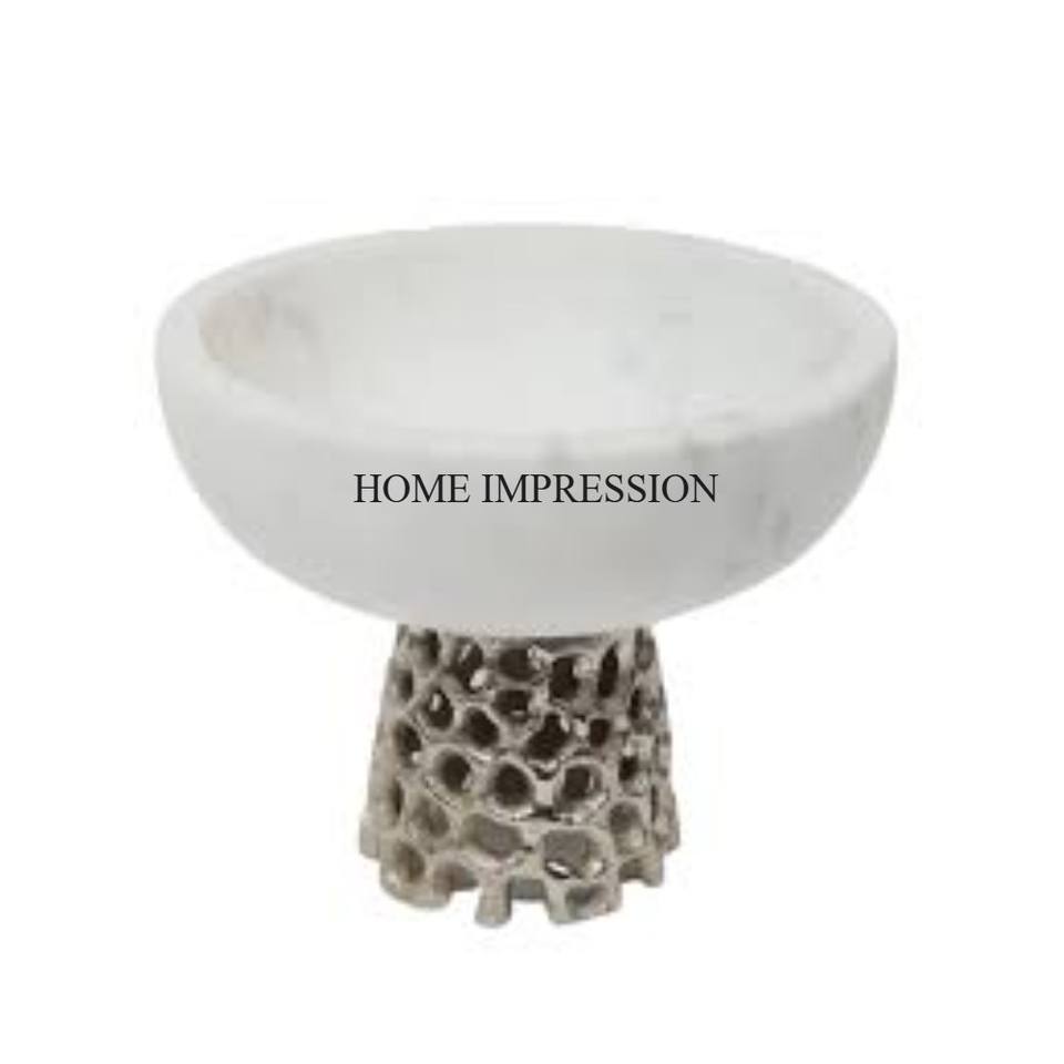 ชามหินอ่อนสีขาวทรงกลมฐานโลหะชุบทองดีไซน์เนอร์สินค้าจากผู้ผลิตอินเดียโดยตรงจากโรงงาน