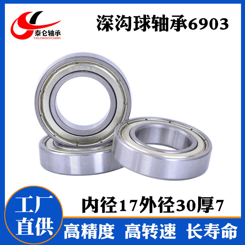 จำหน่ายโดยตรงจากโรงงาน ลูกปืนเม็ดกลมร่องลึกแบบผนังบาง รุ่น Precision 6903ZZ สำหรับของเล่นและมอเตอร์ ขนาด 17*30*7