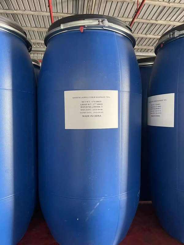 วัตถุดิบสารลดแรงตึงผิวโซเดียมลอริลอีเธอร์ซัลเฟต70สำหรับผลิตภัณฑ์ทำความสะอาดสารเคมีประจำวัน