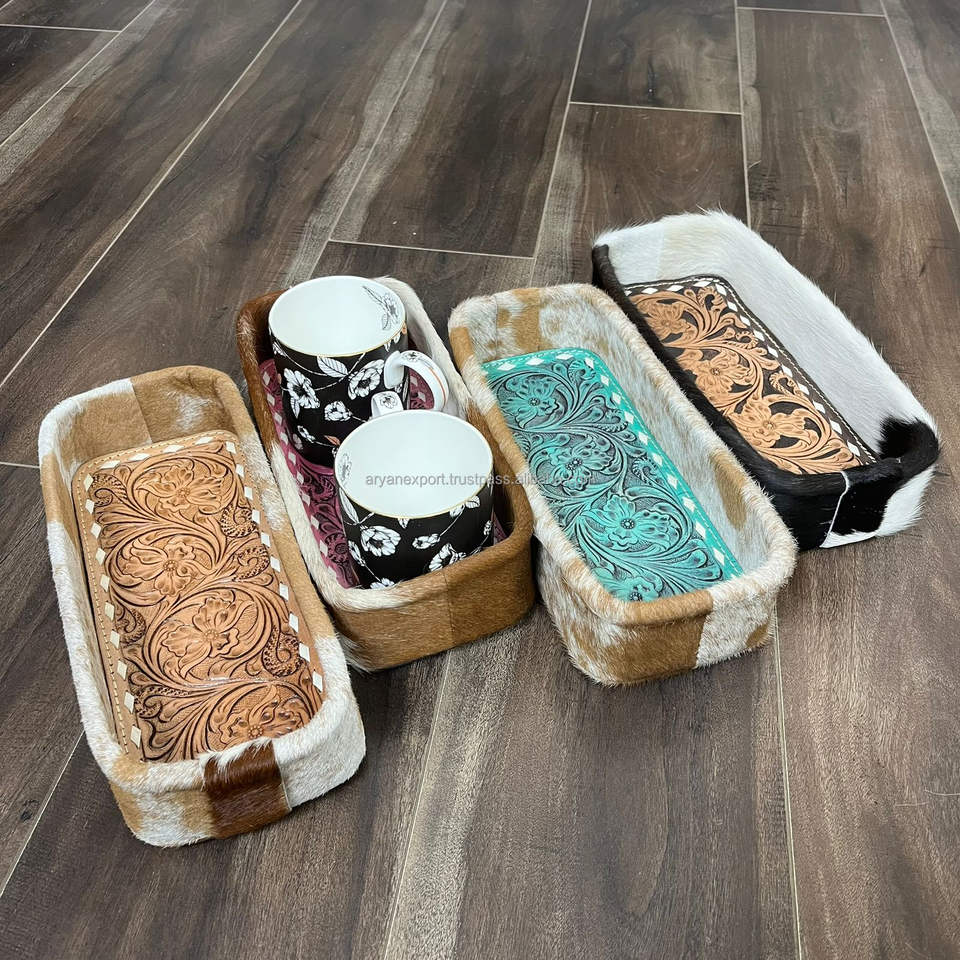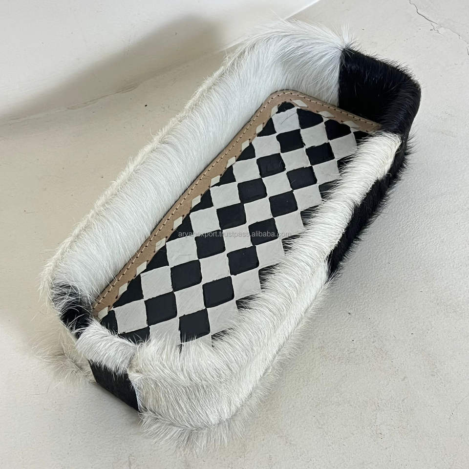 Product name:Hand Tooled Checkered Cowhide Leather Serving Tray