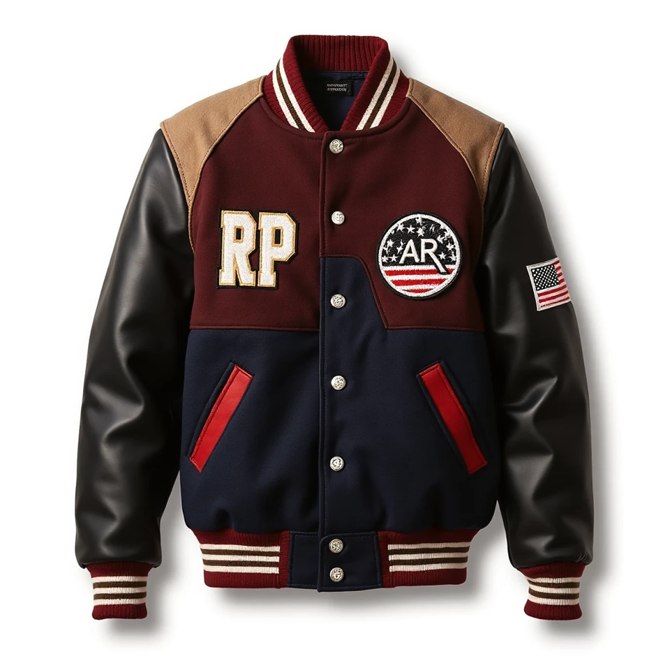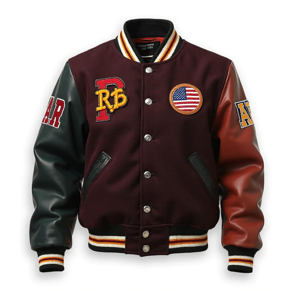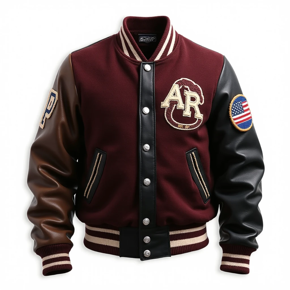 แจ็คเก็ตบอมเบอร์สไตล์วาร์ซิตี้ แขนหนัง ผลิตจากโรงงานโดยตรง รับผลิตตามแบบ OEM สไตล์เรโทร สำหรับนักเรียน/นักศึกษา กันน้ำ กันลม เหมาะสำหรับขี่มอเตอร์ไซค์