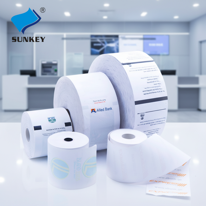 ขายส่งจากโรงงานโดยตรง กระดาษม้วนสำหรับใบเสร็จ 80x80 มม. ปลอดสาร BPA กระดาษม้วนความร้อน 80 มม. 57 มม. สำหรับเครื่องคิดเงินอัตโนมัติ สำนักงานยืมหนังสือ