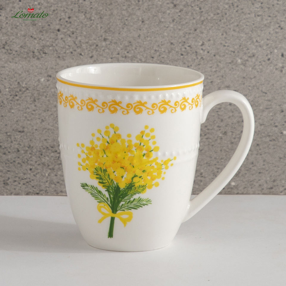ชุดเครื่องถ้วยชามเซรามิกลายดอกอะคาเซียสีเหลือง คอลเลคชั่นสวนโรแมนติกแบบฝรั่งเศส ชุดอาหารค่ำพอร์ซเลนสุดหรูสำหรับการรับประทานอาหารและจัดเลี้ยง