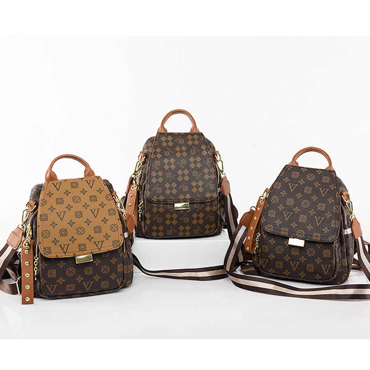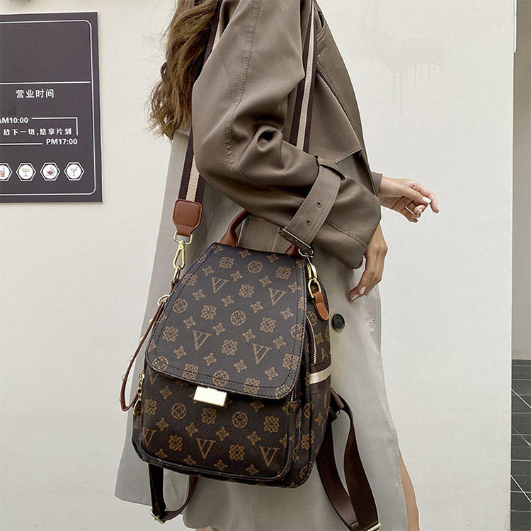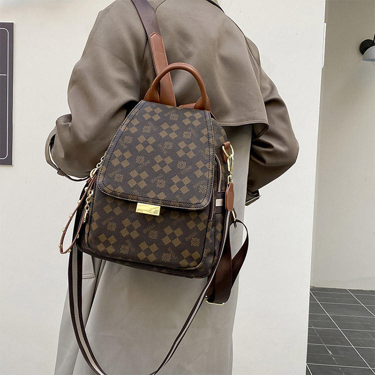 กระเป๋าผู้หญิงสไตล์เรโทรขายส่งจากโรงงานโดยตรง กระเป๋าผู้หญิงลายพิมพ์คลาสสิก กระเป๋าเป้สะพายหลังหนัง กระเป๋าดีไซน์เนอร์