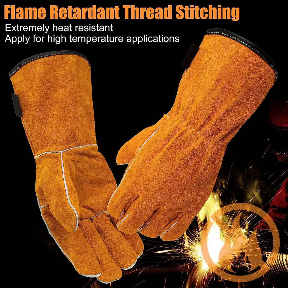 ถุงมือเชื่อมหนังวัวแท้สองชั้น ไซส์ XL จากโรงงานโดยตรง บุขนแกะกันไฟ หนาพิเศษ ทนทานต่อการสึกหรอ