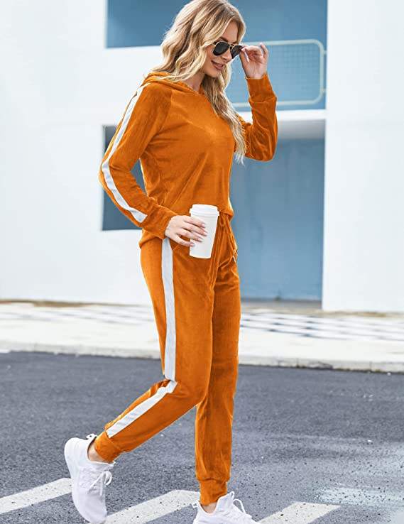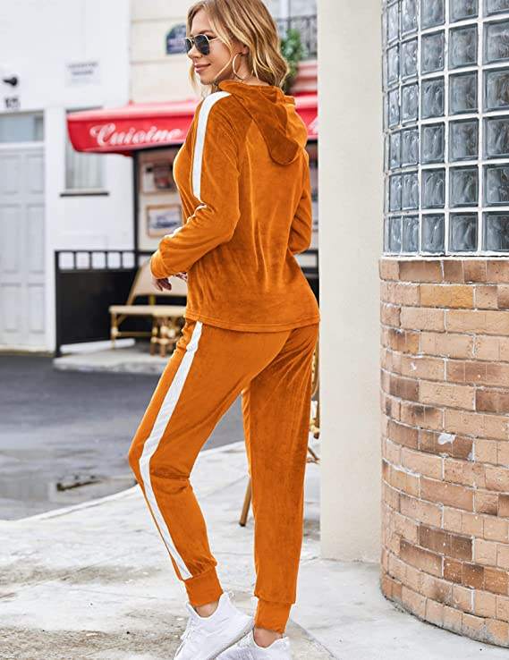 ชุดวอร์มกำมะหยี่แบบกำหนดเองคุณภาพสูงจากโรงงานโดยตรงสำหรับผู้หญิง เสื้อฮู้ดกำมะหยี่และกางเกงขายาว ชุด 2 ชิ้น