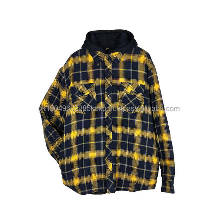 โรงงานผลิตเสื้อโค้ทฮู้ดดี้ผ้าฟลานเนลลายตารางบุผ้าควิลท์สำหรับผู้ชายในฤดูหนาวโดยตรง