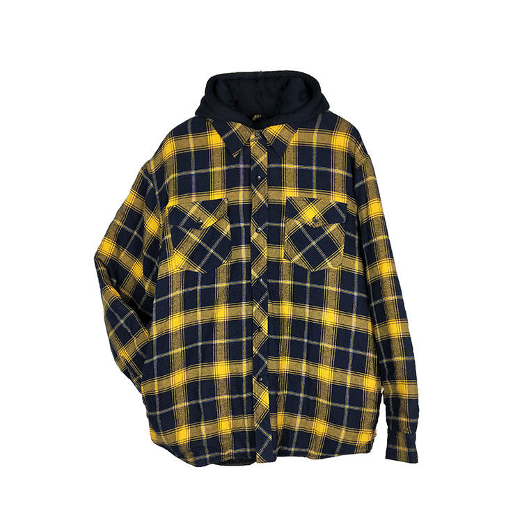 เสื้อโค้ทมีฮู้ดผ้าสักหลาดลายตารางซับในผ้าสักหลาดสำหรับฤดูหนาวของผู้ชายส่งตรงจากโรงงาน