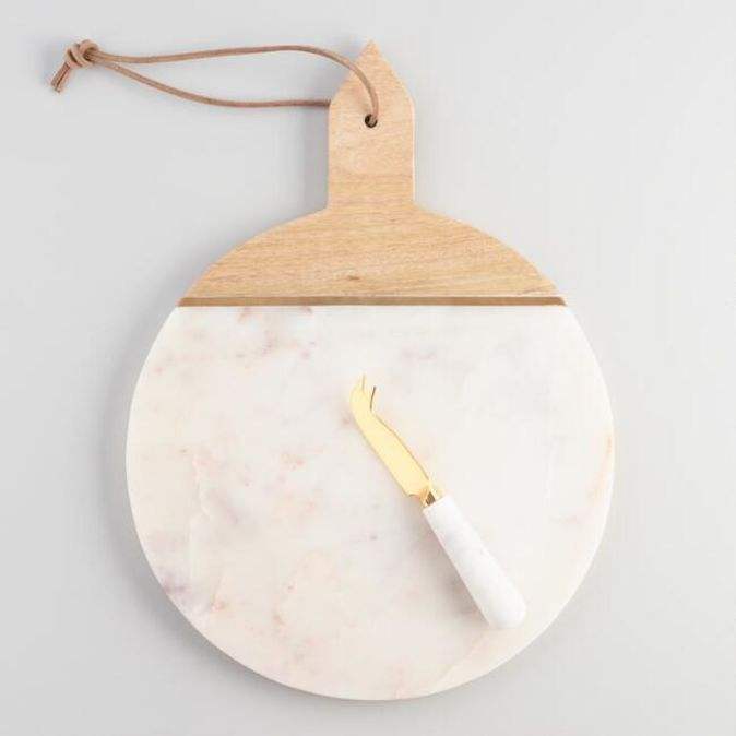เขียงไม้ไผ่สำหรับห้องครัวทำจากไม้อะคาเซียหินอ่อนสีขาวทรงกลมดีไซน์ตามธรรมชาติสั่ง