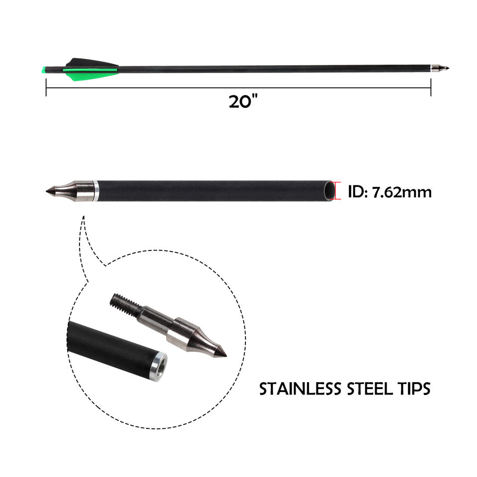 ขายส่งโดยตรงจากโรงงาน ลูกศรหน้าไม้ไผ่ ขนาด 7.62 มม. ความยาว 16/18/20/22 นิ้ว ทำจากคาร์บอนไฟเบอร์และเหล็ก พร้อมปีกพลาสติก