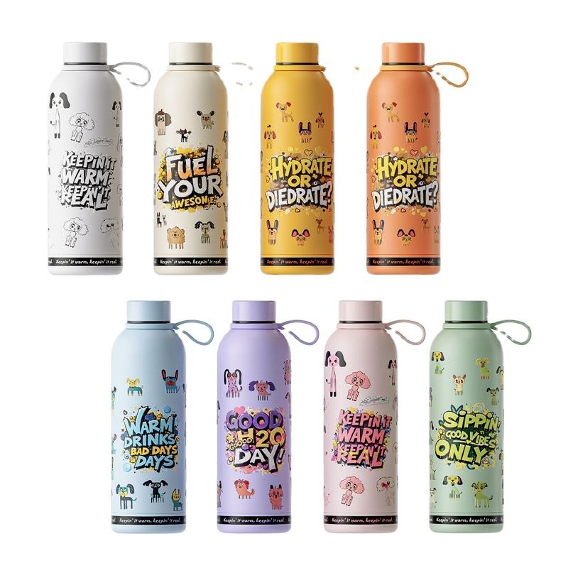 ขวดน้ำสแตนเลส 304 แบบสุญญากาศสองชั้น ขนาด 500 มล. พร้อมหูจับซิลิโคน ผลิตจากโรงงาน