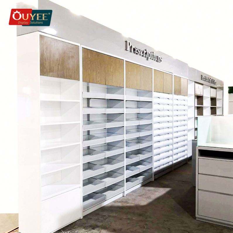 ตู้แสดงสินค้าร้านขายยาเป็นมิตรกับสิ่งแวดล้อมชั้นวางยาเฟอร์นิเจอร์ร้านขายยา