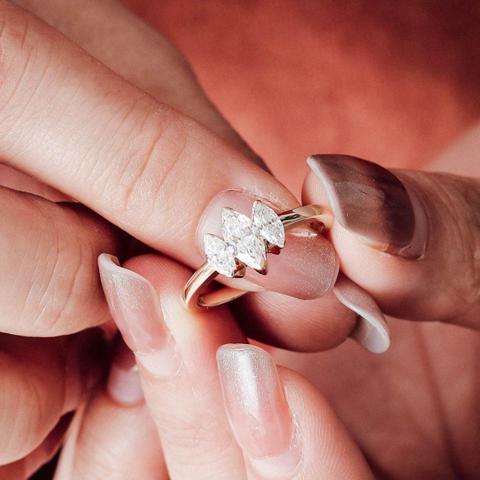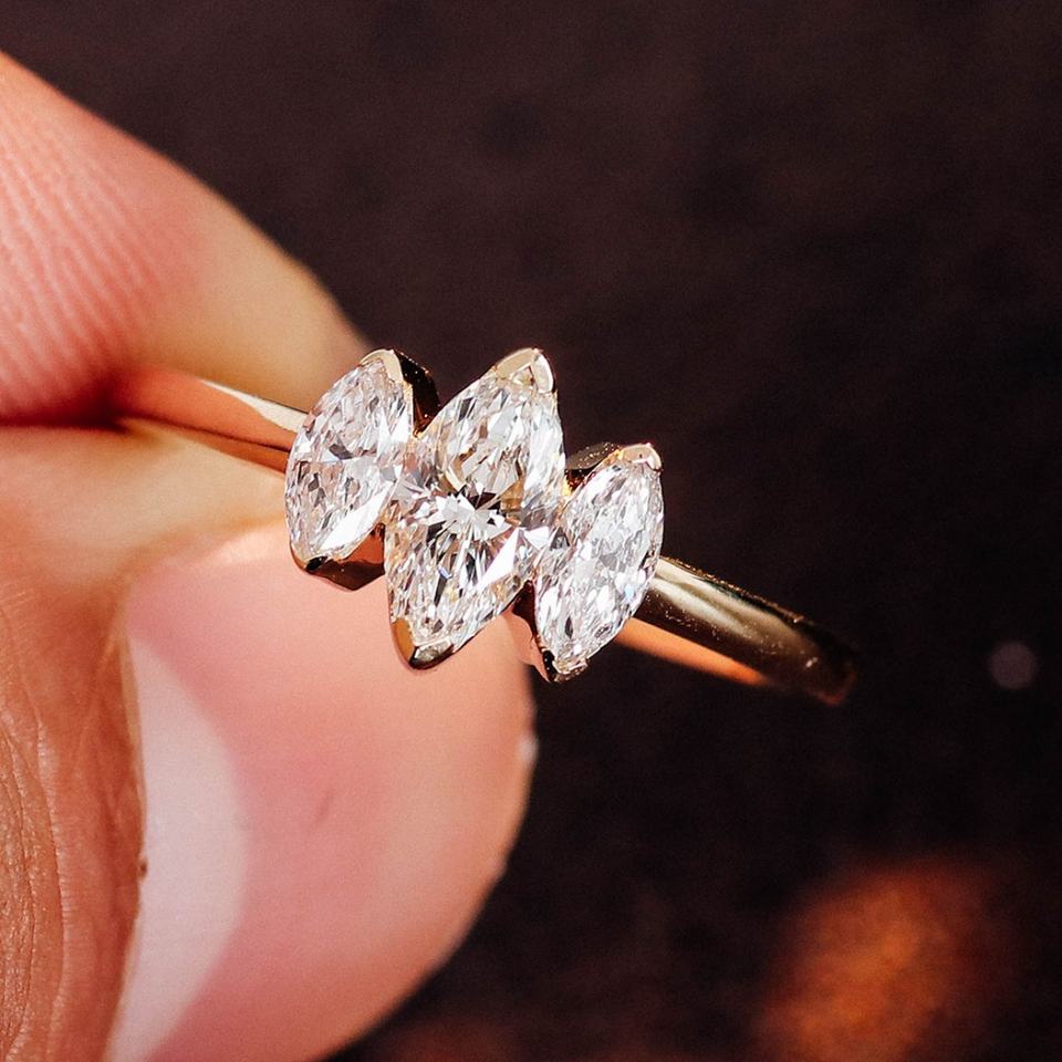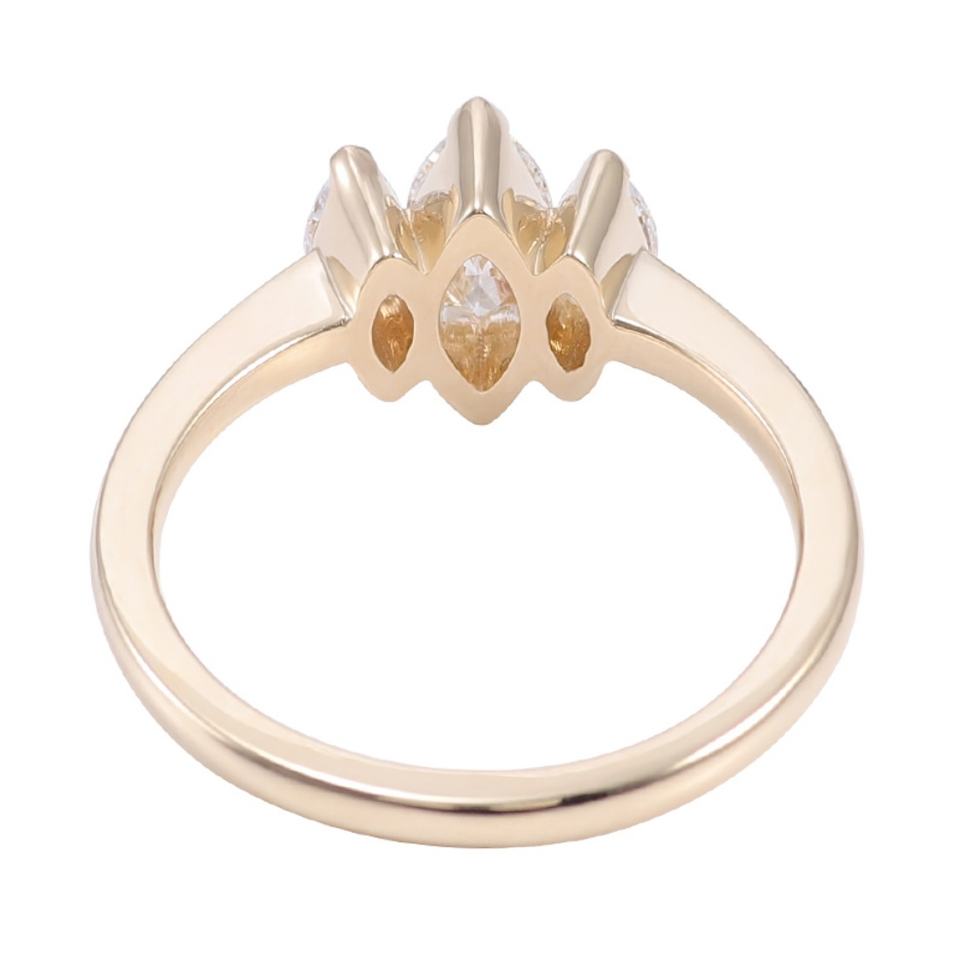 แหวนเพชรแล็บโกรนทองคำ 10K สีเหลือง ดีไซน์หรูหราแบบสามเม็ดทรงมาร์คีส์ ออกแบบเฉพาะบุคคลสำหรับผู้หญิง