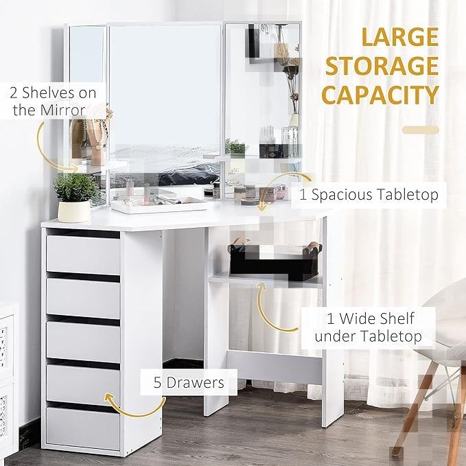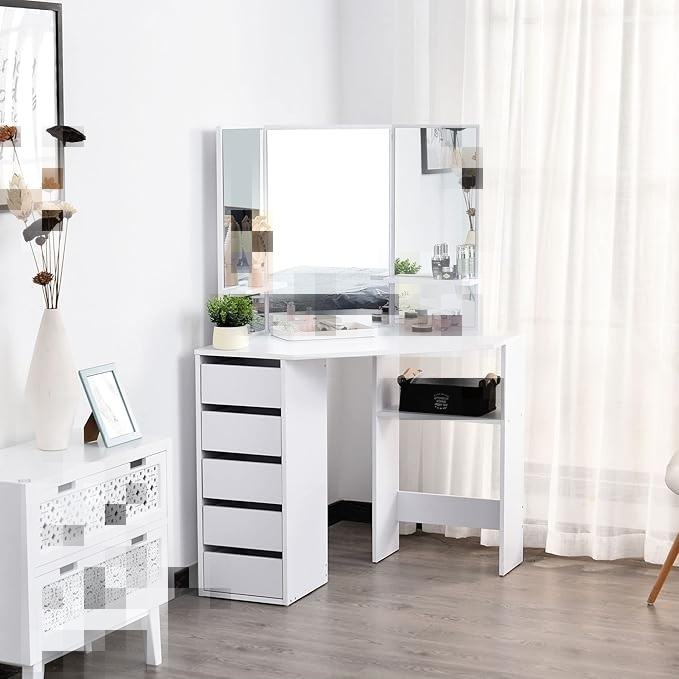 โต๊ะเครื่องแป้งแบบมีลิ้นชัก 5 ชั้น พร้อมกระจก 3 ชั้น ดีไซน์หรูหราสั่งทำพิเศษจากโรงงาน