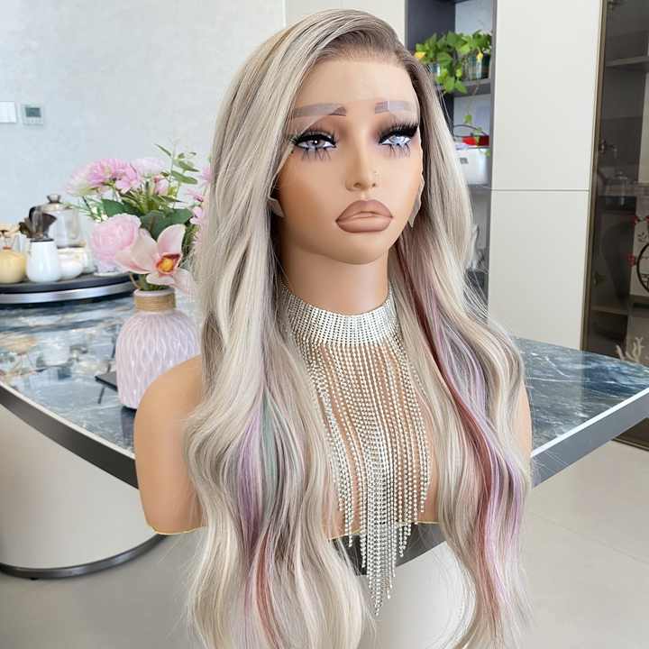 วิกผมลูกไม้แบบ 13x4 พร้อมส่งจากโรงงาน แบบถักเปียสำเร็จรูป ทรงผมสแกนดิเนเวียน โปร่งใส ทนความร้อน ไม่ต้องใช้กาว สีเทา