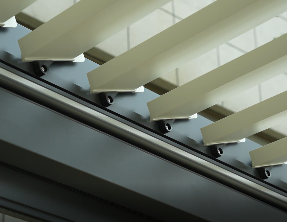 กระโจมอลูมิเนียมแบบมีบานเกล็ดบังแดดใช้มอเตอร์สำหรับลานบ้าน