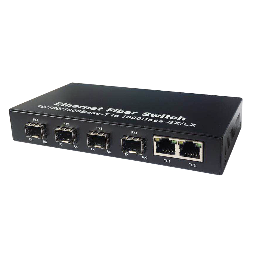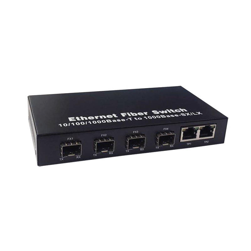 สวิตช์ไฟเบอร์ออปติกกิกะบิตสำหรับโรงงาน 4 พอร์ต SFP ไฟเบอร์+2 RJ45 ตัวแปลงสื่อไฟเบอร์ออปติก 10/100/1000M สวิตช์เครือข่ายอีเธอร์เน็ต