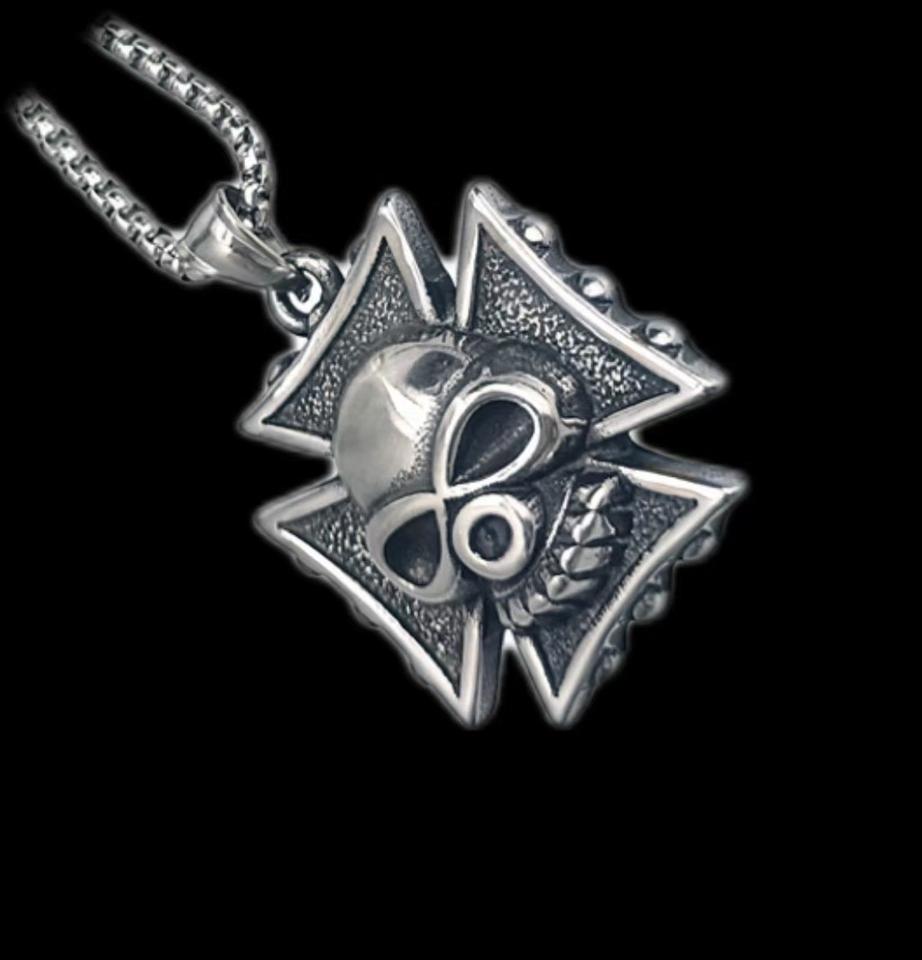 จี้สเตนเลสสตีลกันน้ำสำหรับวันฮาโลวีนสำหรับลูกชายของฉันจี้ห้อยคอหัวกระโหลกหลายสไตล์ย้อนยุค