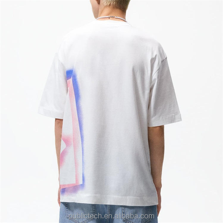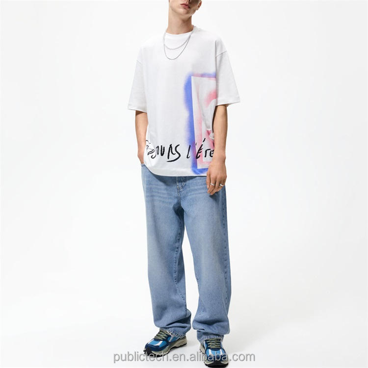 เสื้อยืดผู้ชายทรงโอเวอร์ไซส์ ผ้าคอตตอนหนา 220 กรัม พิมพ์ลายกราฟฟิตี้ โลโก้สกรีนตามสั่ง สำหรับฤดูร้อน