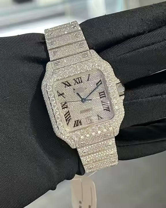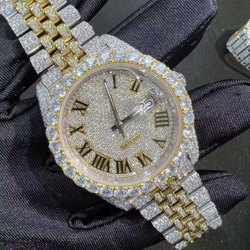 นาฬิกาโมอิสซาไนต์หรูหราระดับไฮเอนด์จากโรงงาน นาฬิกาโมอิสซาไนต์ฮิปฮอปพรีเมียมสแตนเลสสั่งทำพิเศษ ประดับเพชรโมอิสซาไนต์