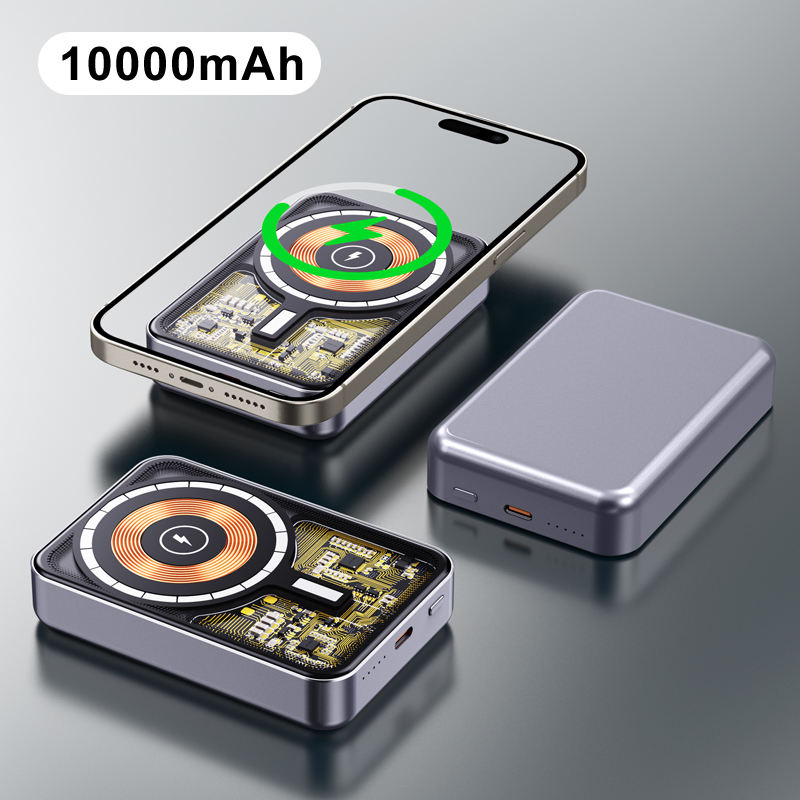 พาวเวอร์แบงค์ขนาดเล็กแบบใสไร้สายระบบแม่เหล็กความจุสูง10000mAh ชาร์จได้เร็วแบบพกพาได้