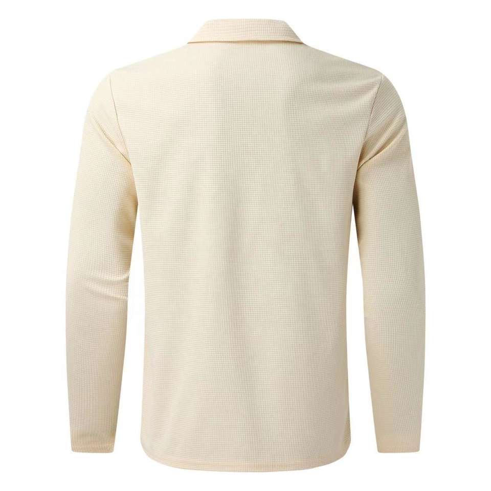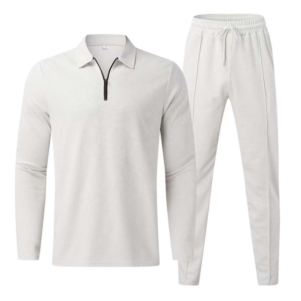 ชุดเซ็ทลำลองผู้ชายคุณภาพสูงจากโรงงาน เสื้อโปโลคอซิปแขนยาว กางเกงขายาวมีเชือกผูก แบบเรียบง่ายสองชิ้น