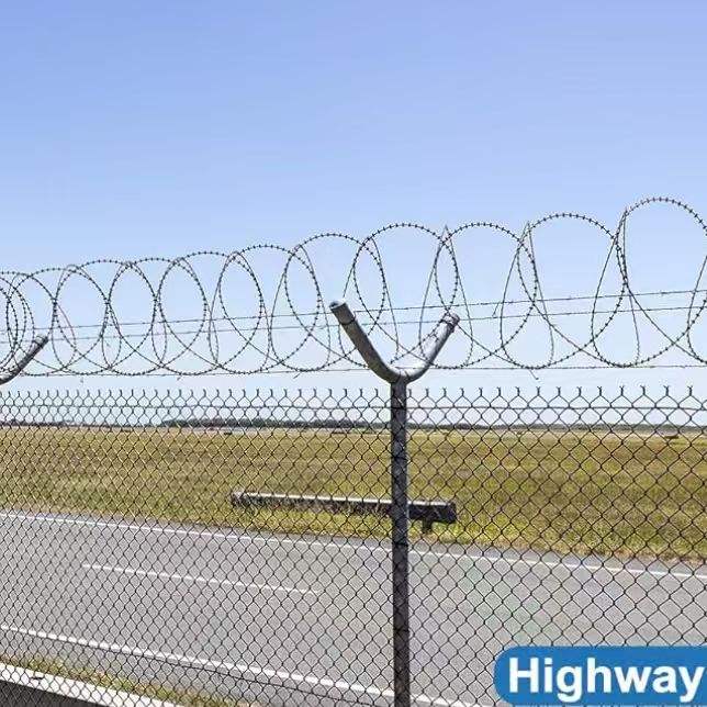รั้วลวดหนามคุณภาพสูงจากโรงงาน ลวดเหล็กชุบสังกะสีป้องกันการปีนป่าย สำหรับใช้ในสนามบิน แบบกำหนดเองได้