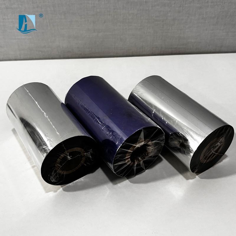 ริบบิ้นแว็กซ์คุณภาพสูงจากโรงงาน 110x300 ริบบิ้นถ่ายโอนความร้อนแบบเรซิ่น ริบบิ้นแว็กซ์มาตรฐานสำหรับเครื่องพิมพ์เทปคาร์บอน