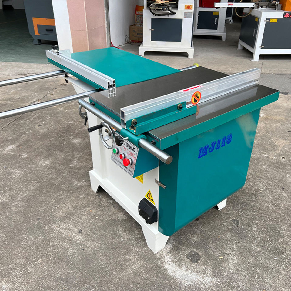 เครื่องเลื่อยวงเดือนสำหรับงานไม้แบบแนวนอนในโรงงาน มุมแกว่ง 0-45 องศา 380V พร้อมโต๊ะเลื่อนรางคู่ มอเตอร์หลัก