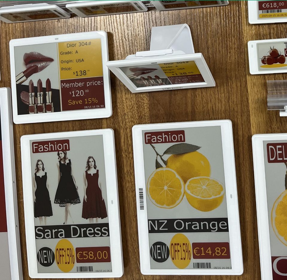 เทคโนโลยีใหม่จากโรงงาน ป้ายราคาอิเล็กทรอนิกส์อัจฉริยะ E Ink สำหรับร้านค้าปลีก ระบบไร้สาย Wifi Bt Ble ขนาด 7.5 นิ้ว ป้ายชั้นวางสินค้าดิจิทัลสี่สี