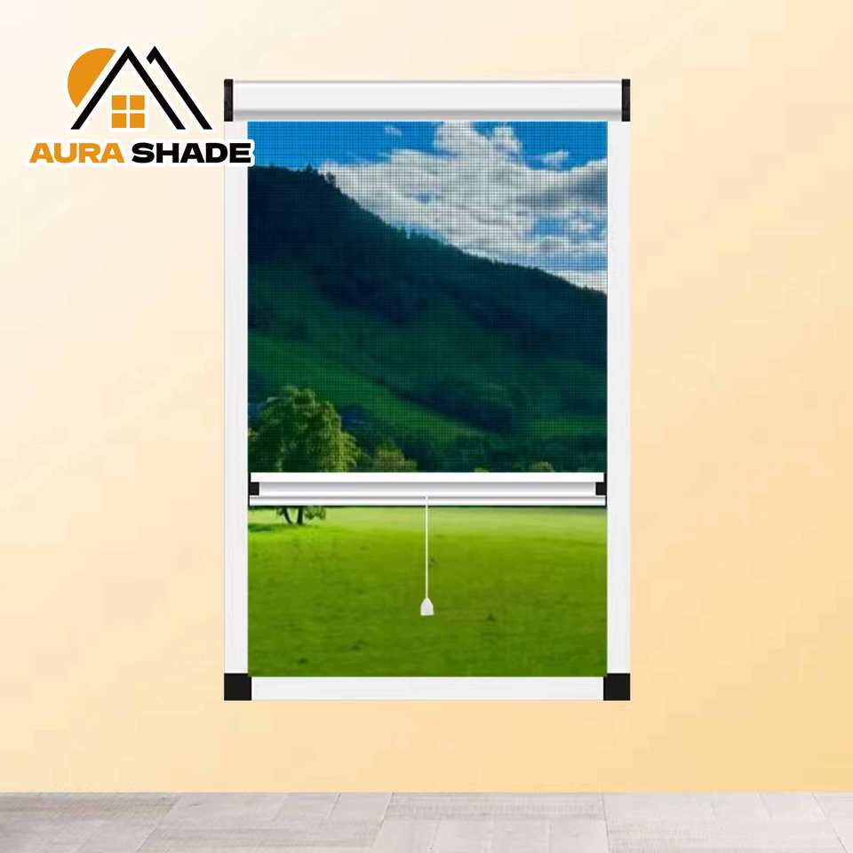 มุ้งลวดม้วนเก็บได้แบบเลื่อน ขายดีจากโรงงาน ตาข่ายเรียบ มองไม่เห็น ใช้กับหน้าต่างบ้าน โครงอลูมิเนียมอัลลอย