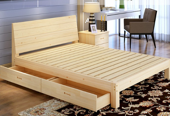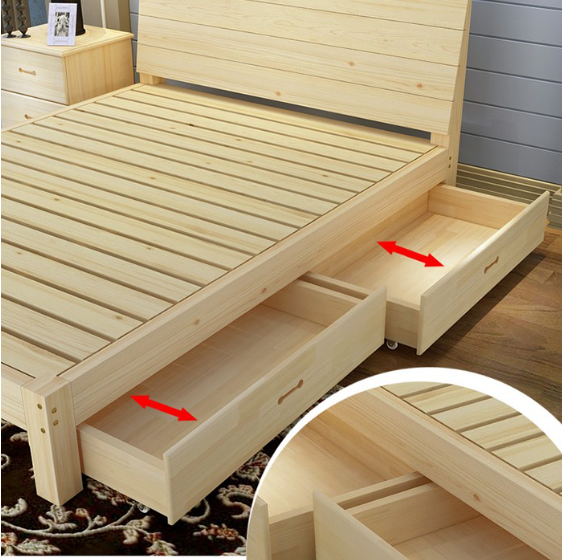 เตียงเดี่ยวไม้เนื้อแข็ง,ไม้สนเนื้อนิ่มเรียบง่ายดีไซน์ทันสมัยพร้อมลิ้นชัก