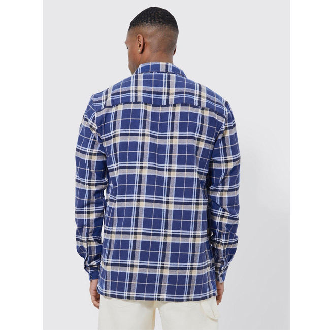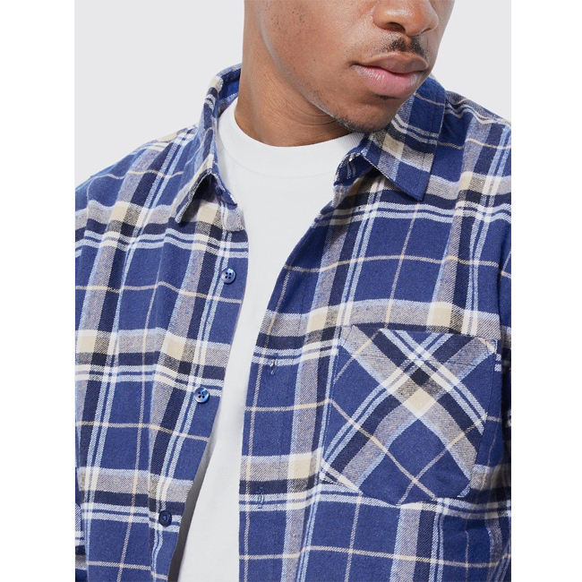 เสื้อเชิ้ตผู้ชายลายสก็อตสีน้ำเงิน ผ้าฝ้าย 100% สไตล์ลำลอง ขายดีจากโรงงาน รับผลิตแบบ OEM ODM ราคาส่งที่ดีที่สุด