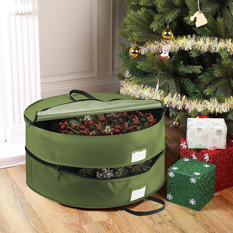 โรงงานร้อนขายวันหยุดคริสต์มาสถุงเก็บด้วยผ้า Oxford 600D สำหรับการจัดเก็บพวงหรีด